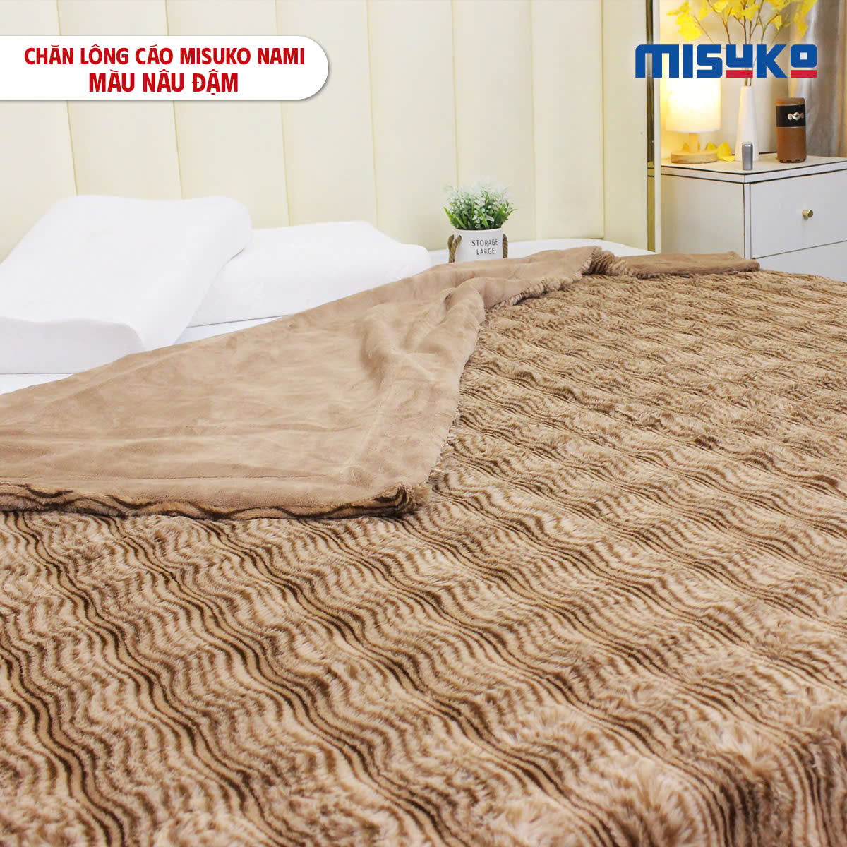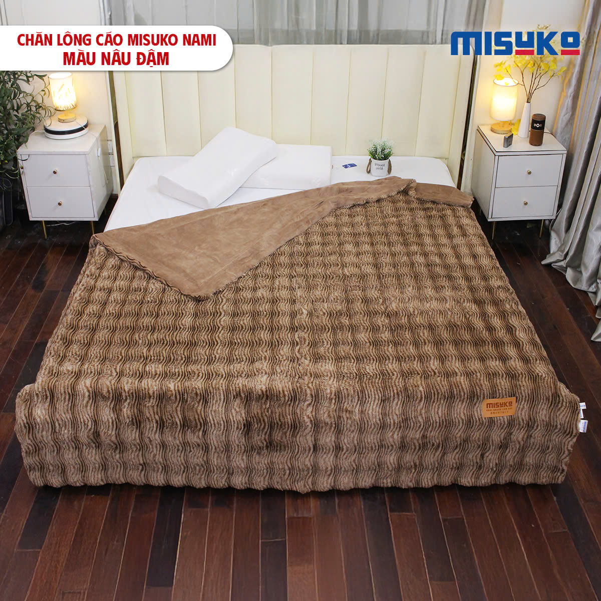 Hướng dẫn vệ sinh chăn lông cáo Misuko Nami màu nâu đậm
