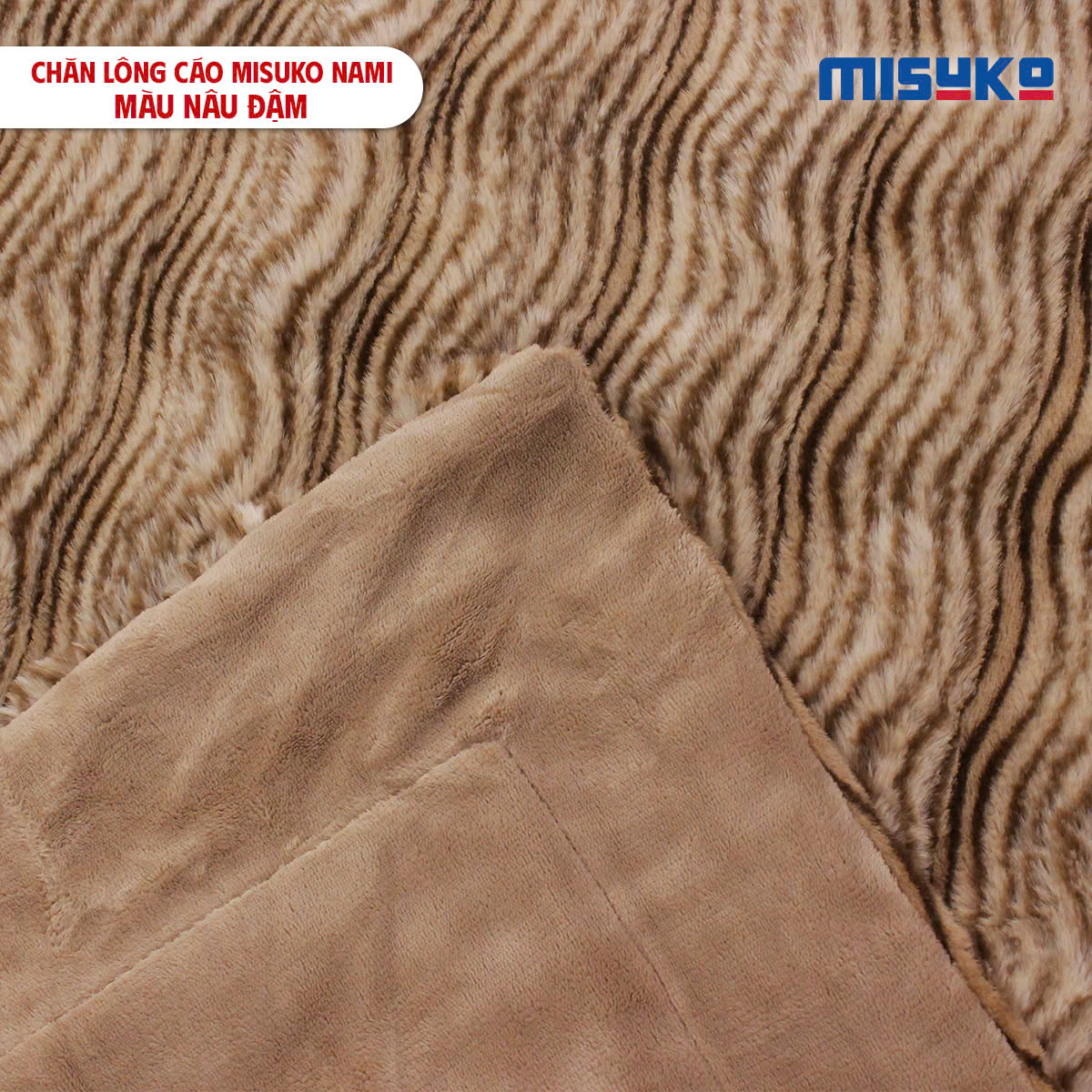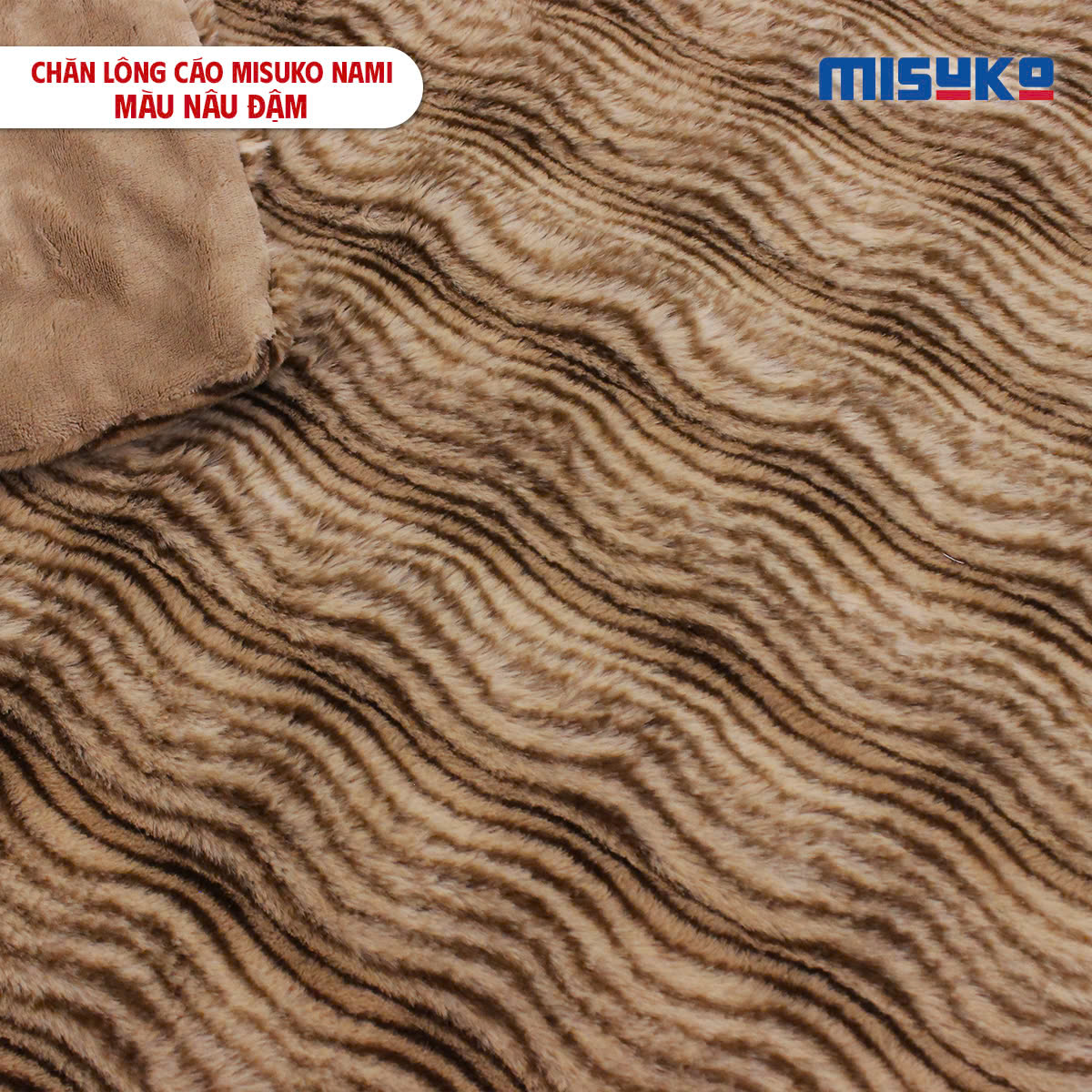 Chăn lông cáo nhân tạo Misuko Nami loang lượn sóng màu nâu đậm 200x220cm nặng 2,7kg